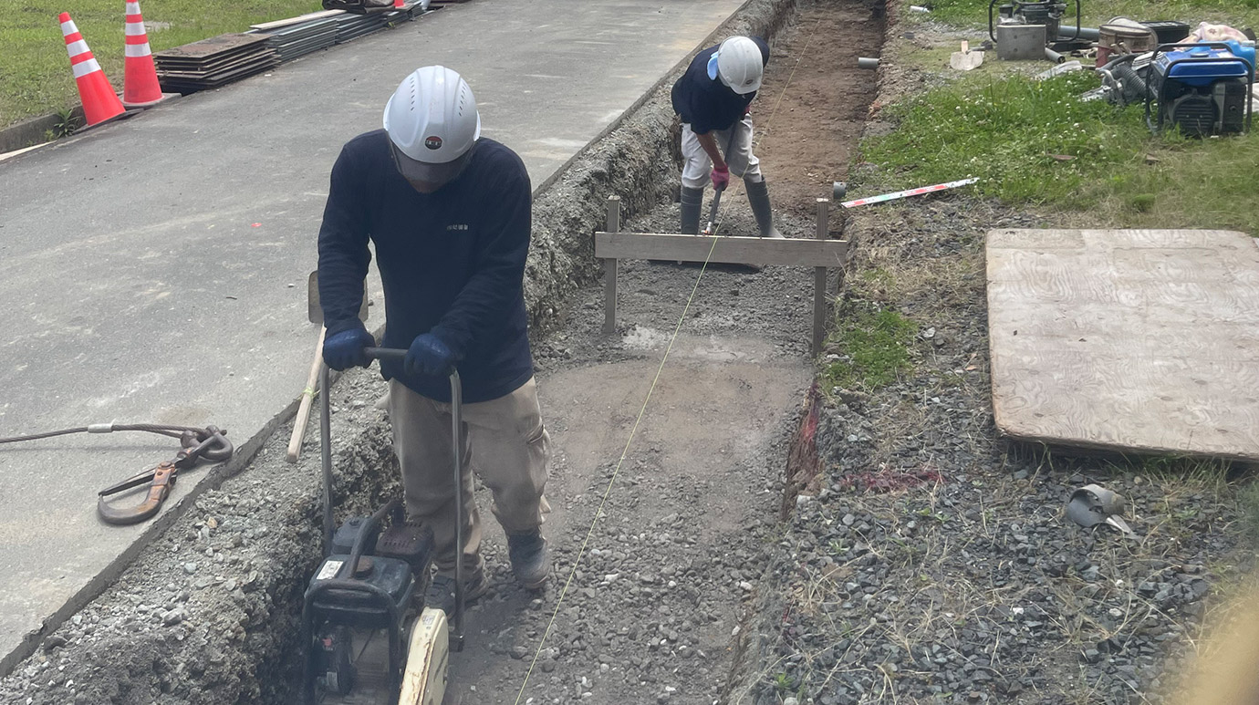 自治体から業務を委託し、道の草刈りや側溝の整備など土木一式工事を行います。